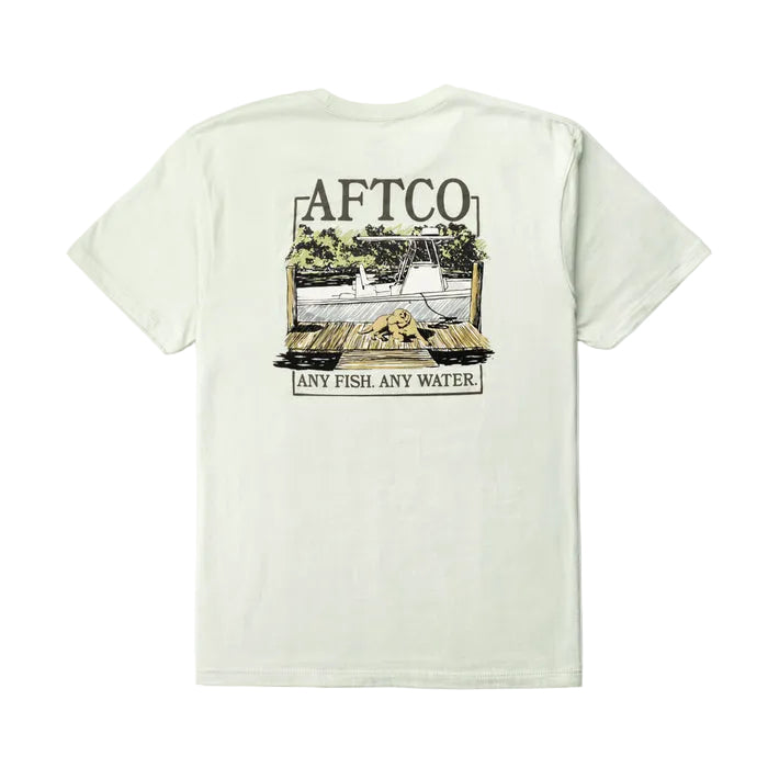 Regular price $29.00Seek displays the ultimate saltwater setup with a center console at the ready and a labrador retriever sitting dockside. This boat t-shirt is made from a comfortable 60/40 cotton-poly blend fabric designed to last wear after wear. From chasing tuna to kicking back, AFTCO has you covered.
