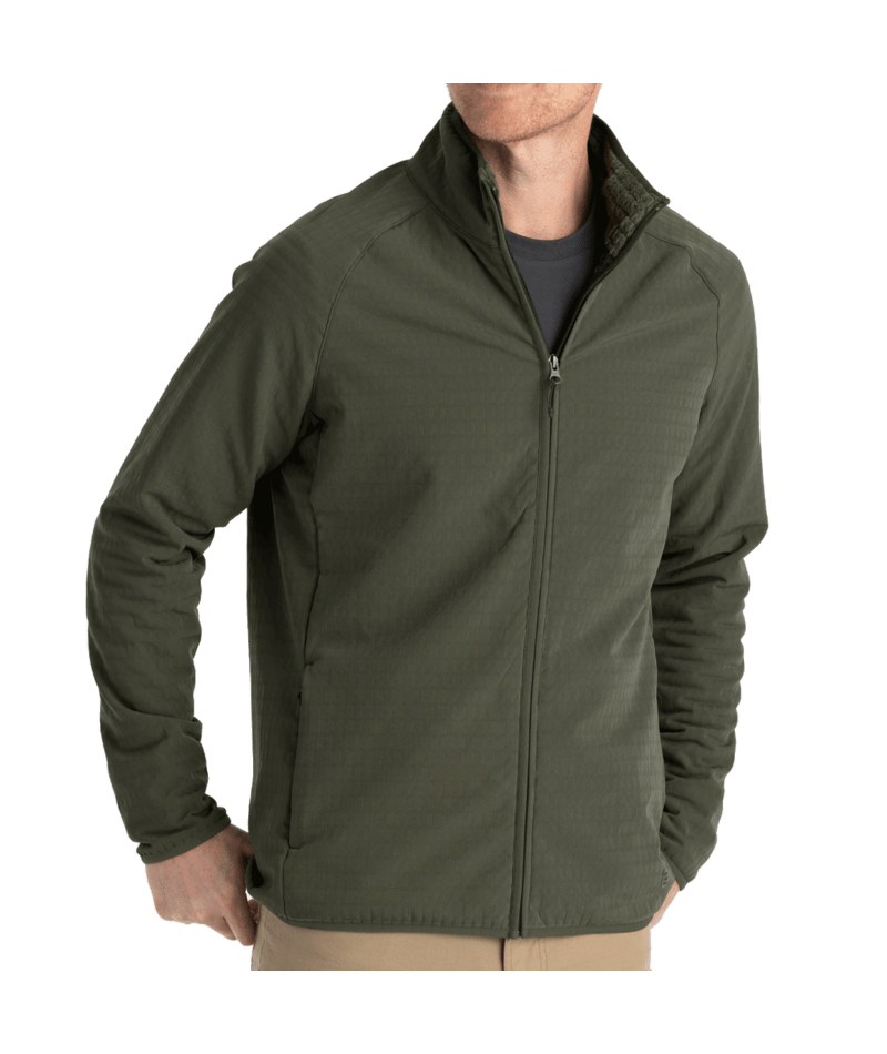 Regular price $99.98One of the most coveted styles around Free Fly HQ, the Gridback Fleece Jacket is an outerwear masterpiecean innovative combo of classic fleece comfort and streamlined weather-resistance. Free Fly's product team worked their fabric sorcery and outfitted the interior with an indulgently soft, high-pile fleece that traps and retains heat throughout gridded channels. They finished it with a bonded, stretch-weave shell that keeps out rain and wind unlike any other fleece. Lightweight and packable, it's an awesome go-to jacket for transitional seasons and warm enough to layer up when winter's at its worst.