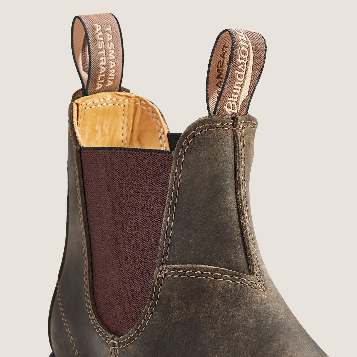 Blundstone #585 Women's Chelsea boots, in premium leather, and the ever popular rustic brown color. These boots are great for everyday wear, no matter where you are or what you do. Lightweight and comfortable, with great shock absorption.