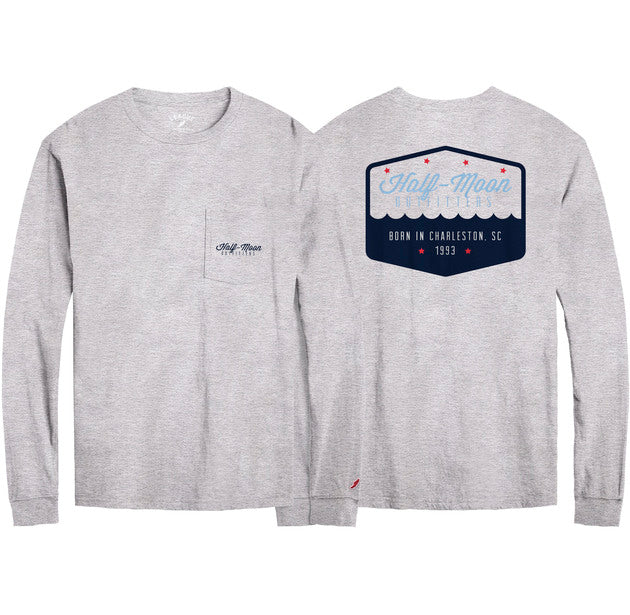 Half-Moon Outfitters Badge Logo Long Sleeve Pocket T-Shirt Ash