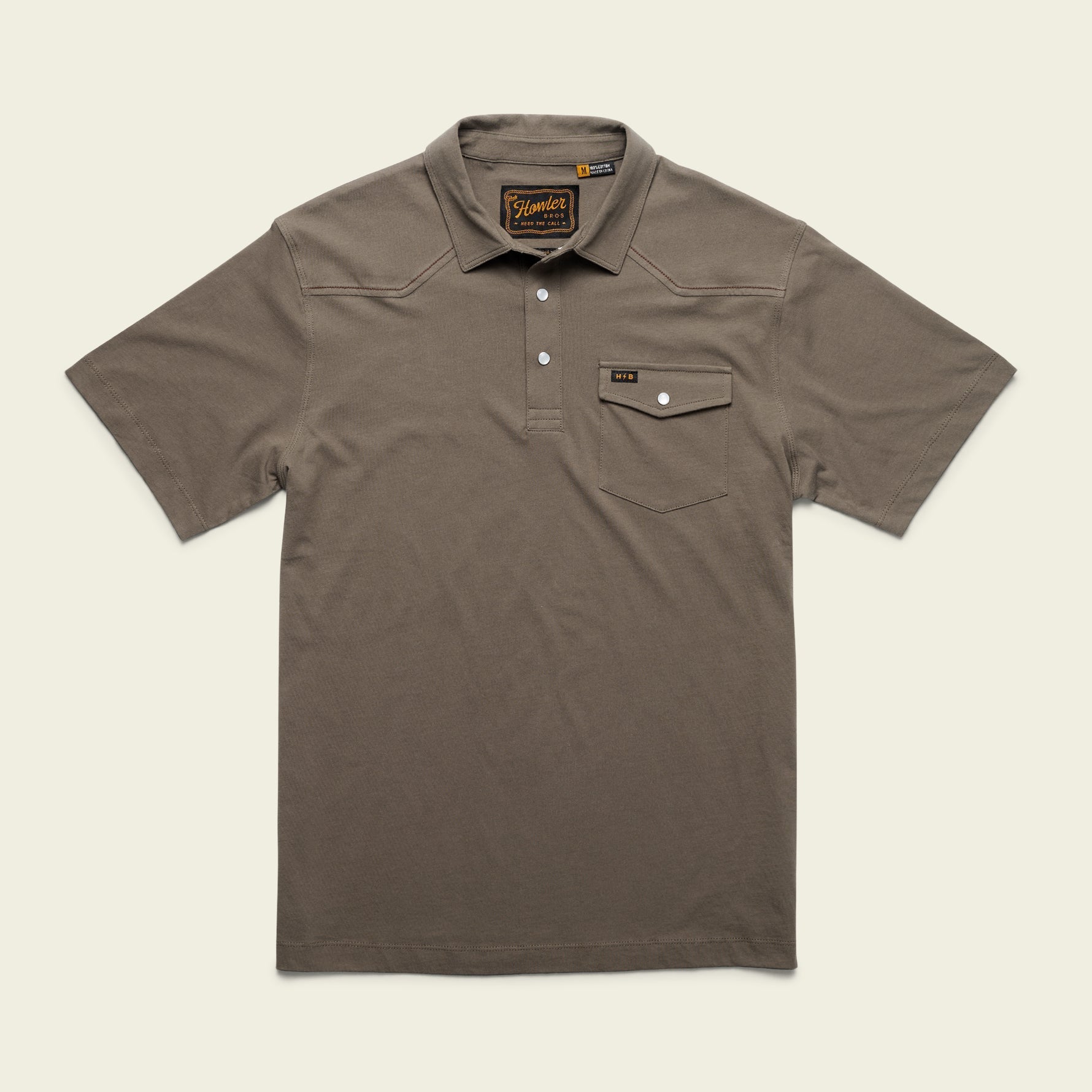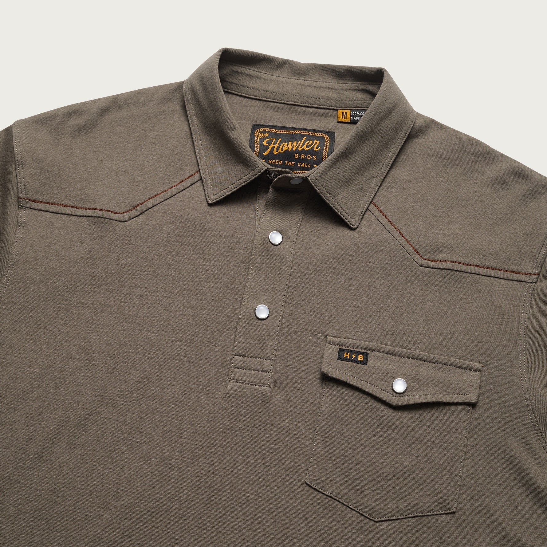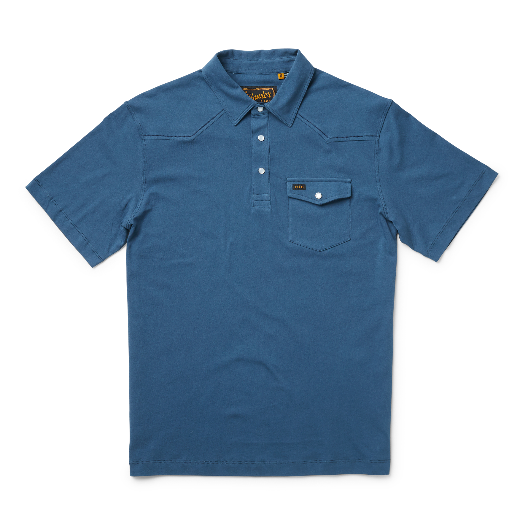 The Ranchero Polo has all the versatility of your favorite staple polo but is a major style upgrade with its cool single pocket design, pearl snaps and subtle western style yoke. Made of super soft 100% heathered cotton you have come to expect from Howler with a straight hem for untucked wear.
