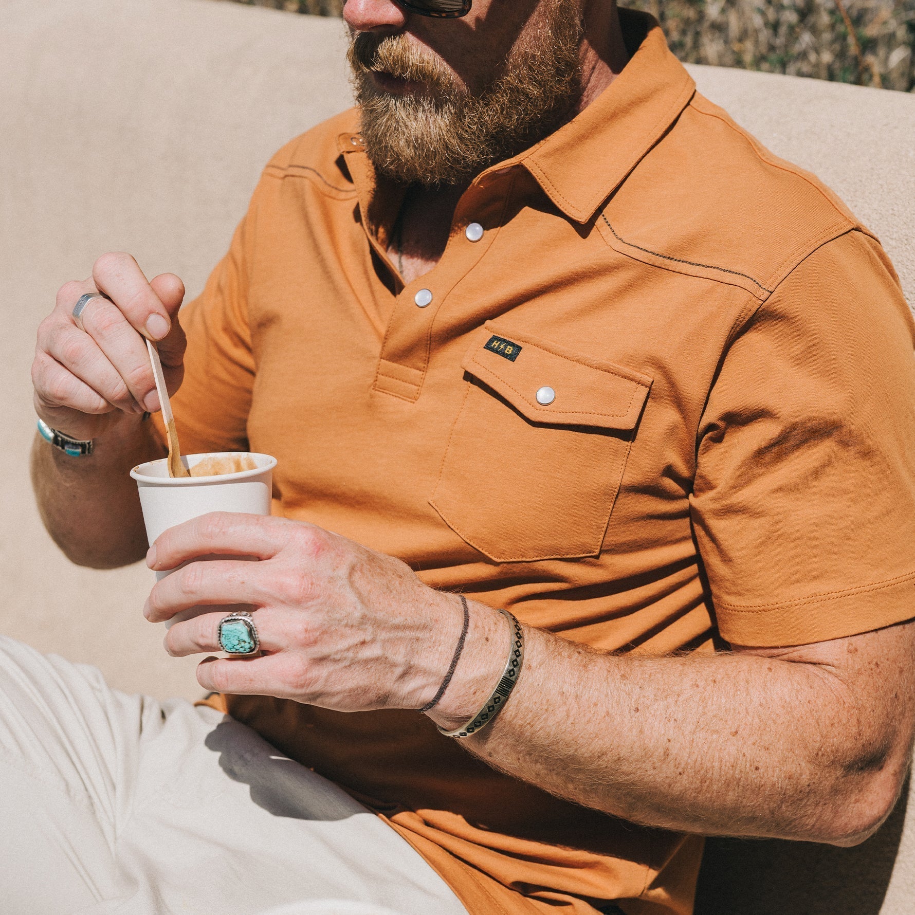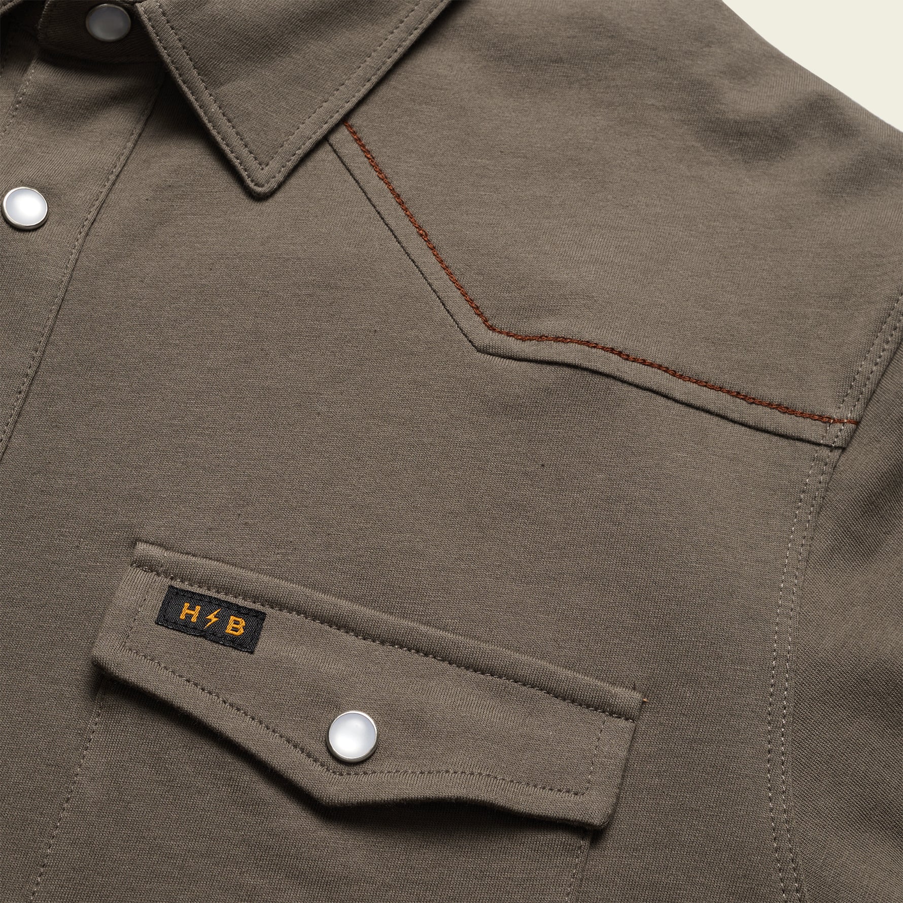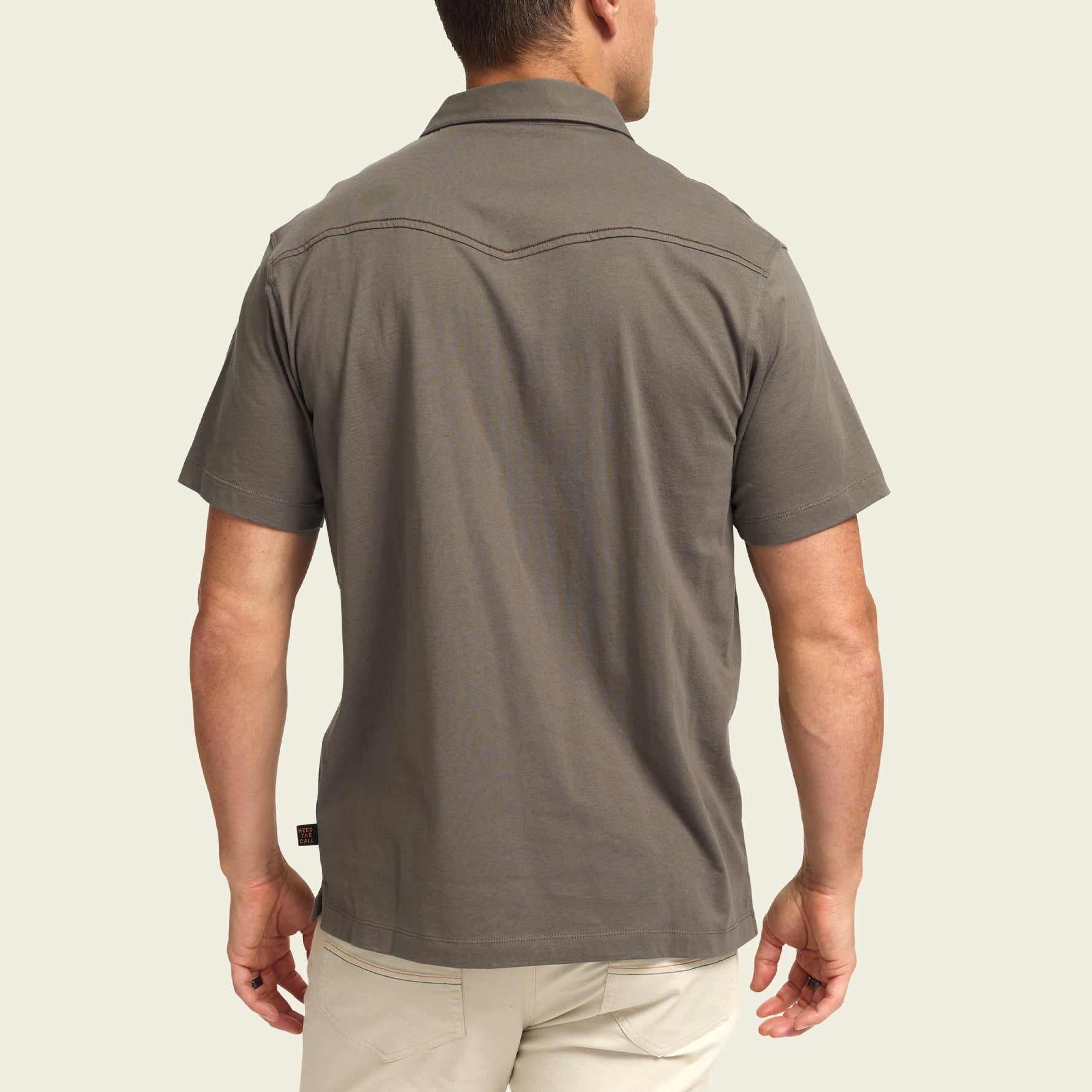 The Ranchero Polo has all the versatility of your favorite staple polo but is a major style upgrade with its cool single pocket design, pearl snaps and subtle western style yoke. Made of super soft 100% heathered cotton you have come to expect from Howler with a straight hem for untucked wear.
