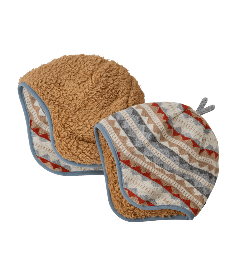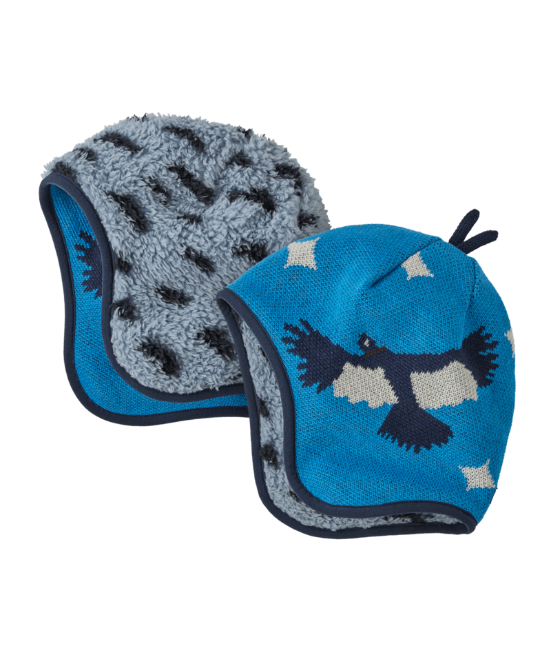 Two beanies in one: this reversible beanie has sweater-knit 100% recycled polyester on one side and 100% recycled polyester high-pile fleece on the other; both sides ensure maximum cuteness and warmth.