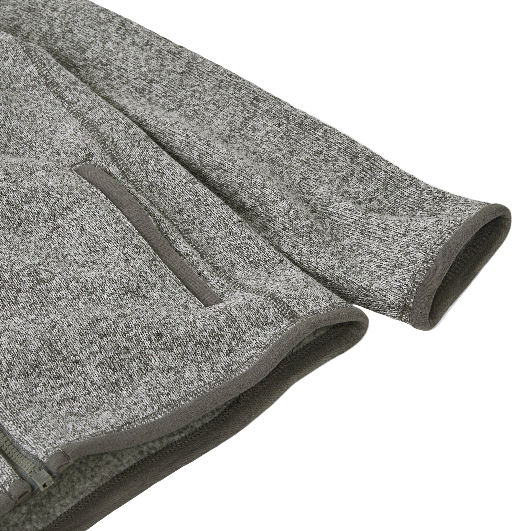Made from soft, warm 100% recycled polyester fleece with a sweater-knit face, a fleece interior and heathered yarns; dyed with a low-impact process that reduces the use of dyestuffs, energy and water compared to conventional heather dyeing methods