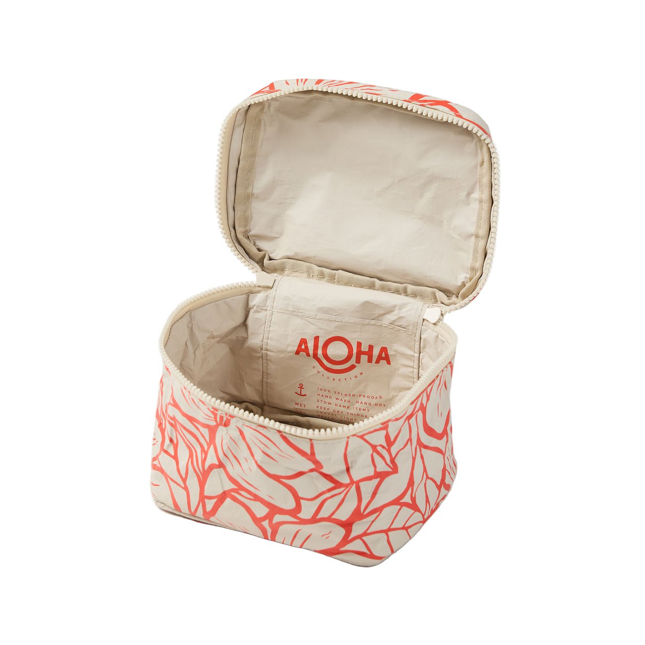SPLASH-PROOF® is the next best thing to waterproof! Your belongings will be protected from a light splash, light rain, or a cocktail spillage, but please do not submerge your ALOHA Collection pouch with belongings inside. The zipper and seams of ALOHA Collection bags are not watertight.