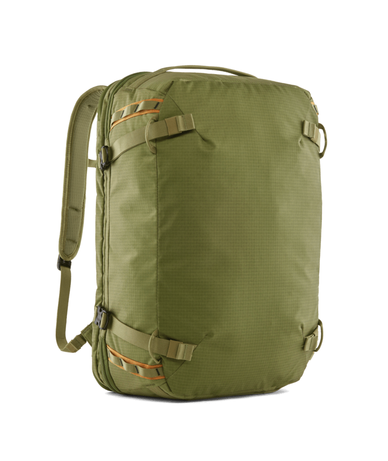 The Patagonia classic Black Hole MLC bag is a burly, soft-sided 45-liter suitcase with enough room for world travel and convertible backpack straps for comfy load carrying, and is made with 100% recycled body fabric, lining and webbing and coated with a 100% recycled TPU laminate. Meets most carry-on requirements.