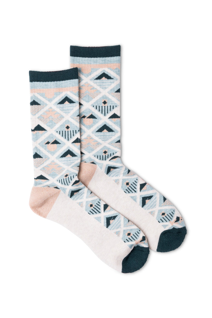Athletic ribbed mid crew sock with jacquard design, french terry footbed, heels & toes with all day arch support. Your toes will thank you. Your feet will be joyous. People will smile and then you will smile. Walk proud.