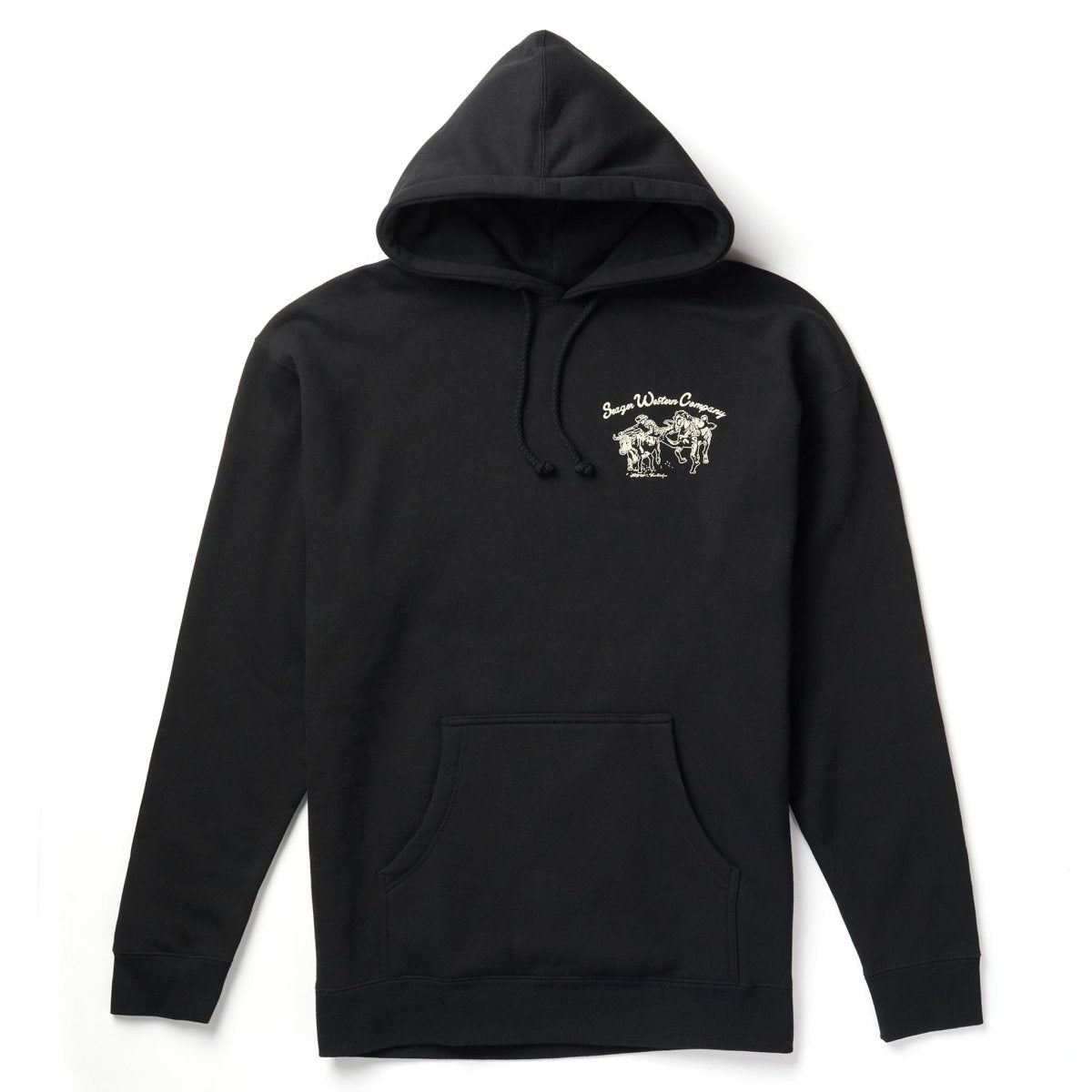 The Los Rios Hoodie brings mid-weight comfort in a cotton/poly blend, paired with artwork that tips its hat to a classic. Strong, simple, and dependable, it's built with ribbed cuffs, waistband, and a front kangaroo pocket for everyday utility while keeping warmth locked in.