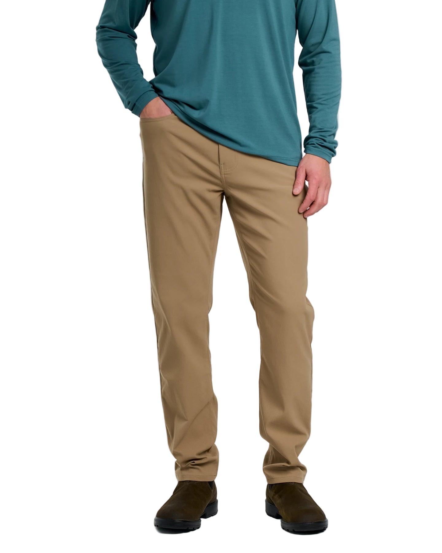 Regular price $108.00Meet the ultimate travel pant. Cut from a midweight technical fabric that lets you stretch out on long-haul flights, the Passage 5 Pocket Pant has a DWR finish that shrugs off unexpected showersso you can hit the ground (or water) running when you get to your destination. Bonus points for the secure zippered pocket hidden behind the back right patch pocket: perfect for safely stashing a small wallet, tickets, and other can't-lose valuables while you're on the go.