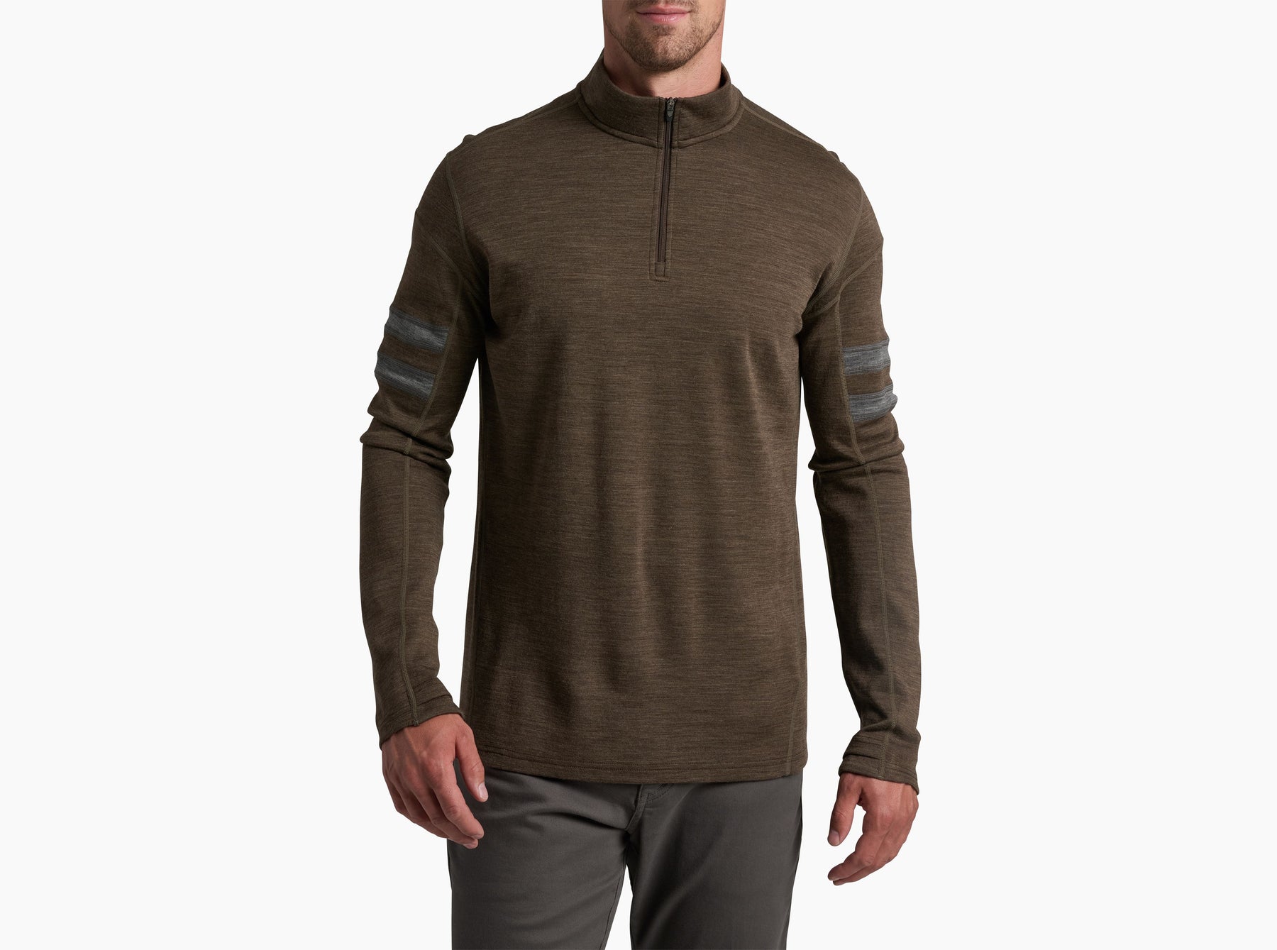 Regular price $129.00The Kuhl TEAM™ MERINO 1/4 ZIP features an articulated design and flat seam construction which makes it the perfect layer for cold weather activities. AERO™ KNIT construction creates micro air pockets to keep you warmer without adding weight while superfine Merino is softer on your skin. NEVER SETTLE™