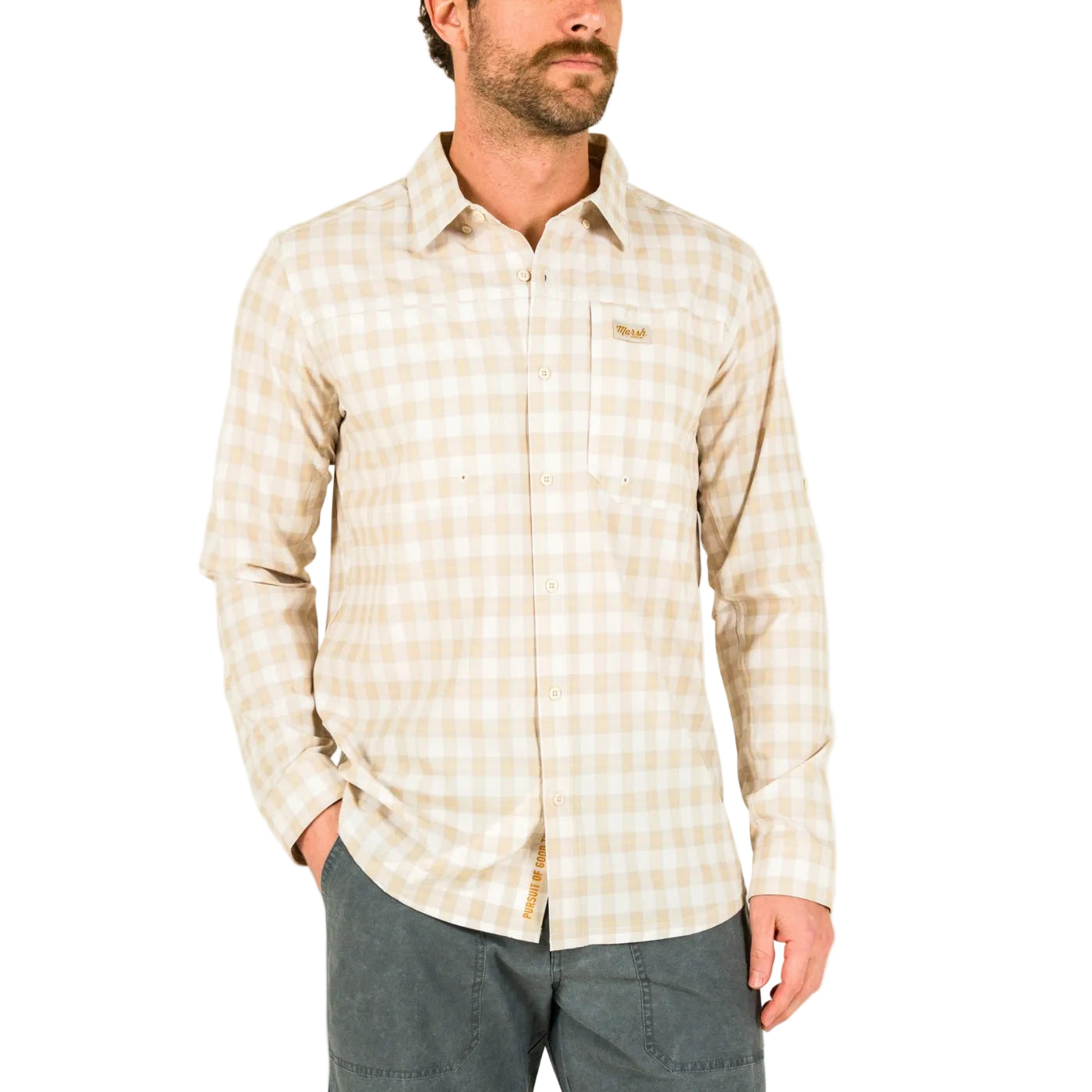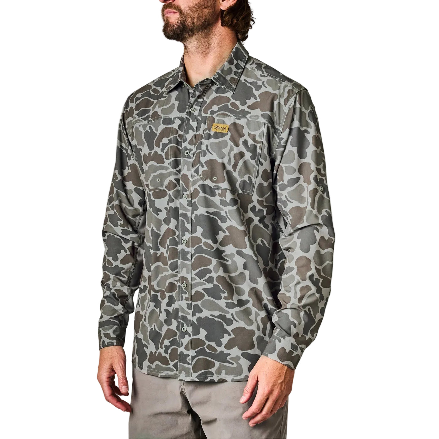 Regular price $79.00A technical button-up designed for those sunrise to sunset days. Constructed of a breathable stretch rip-stop fabric with all the features needed for a day on the water. Mesh vented paneling, microfiber lens cleaner, and a hidden button-down collar for breezy days make this shirt the go-to option.