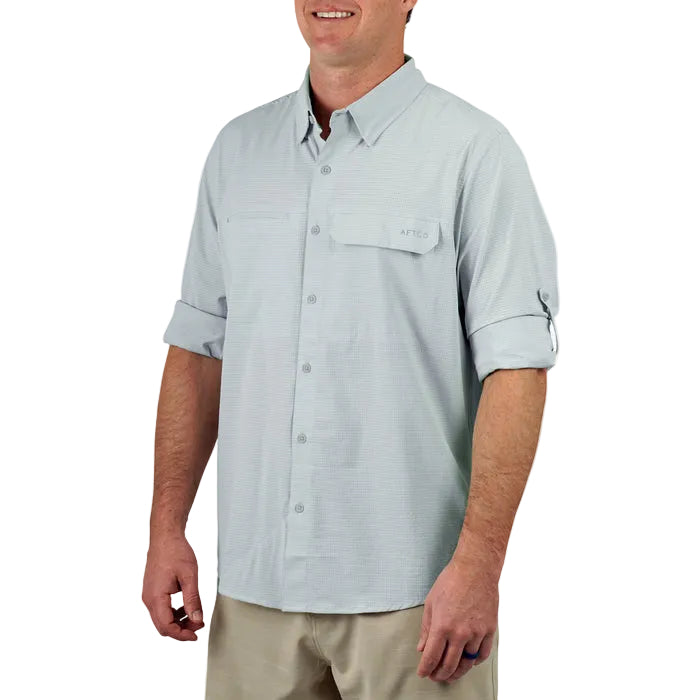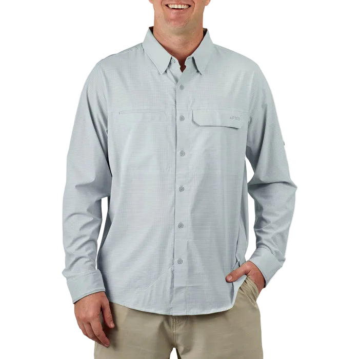 Regular price $69.00The Air-O Mesh button-down fishing shirt has everything you need to conquer a day on the water. It's made from Air-O Mesh stretch fabric that's breathable and antimicrobial to keep the stink off. It also has UPF 40 sun protection, double chest snap pockets, and a hidden lens cleaner at the hem. Whether deep sea fishing or spending the day at your local fishing spot, AFTCO has the right fishing shirt.