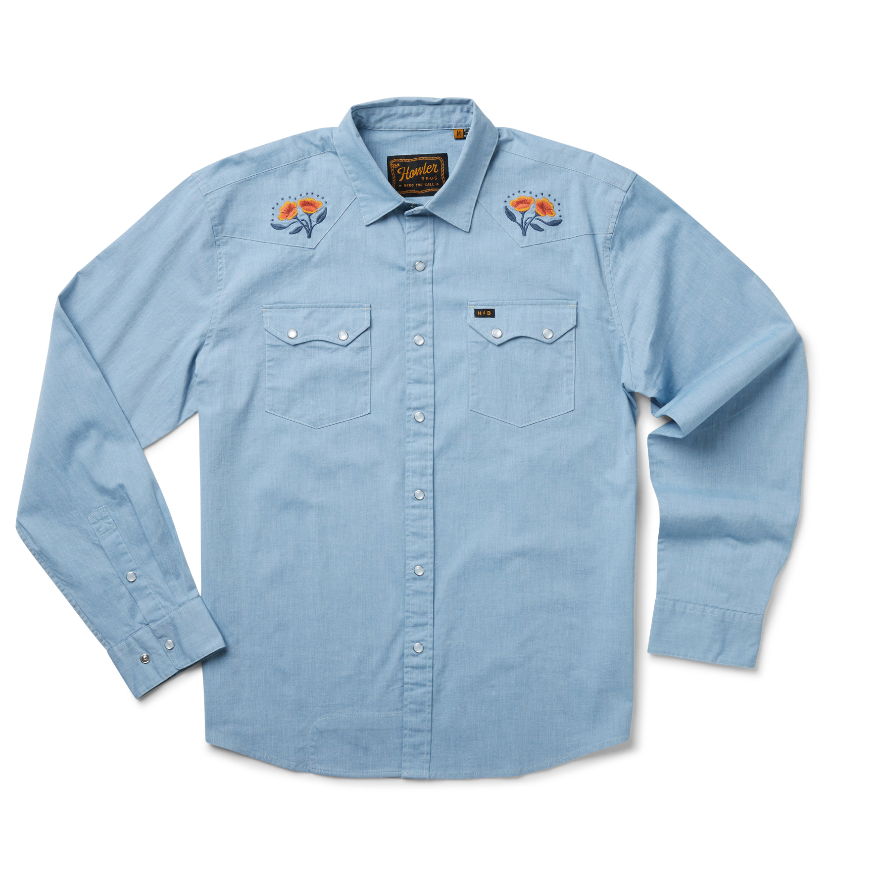 The Crosscut Deluxe is the most sought after item in our fall line year in and year out. Yes, the vintage inspired motif embroidery makes a big statement but so too do the bountiful pearl snaps, western yokes and robust stretch chambray. Collect these right along with your Gauchos for year-round Howler coverage.