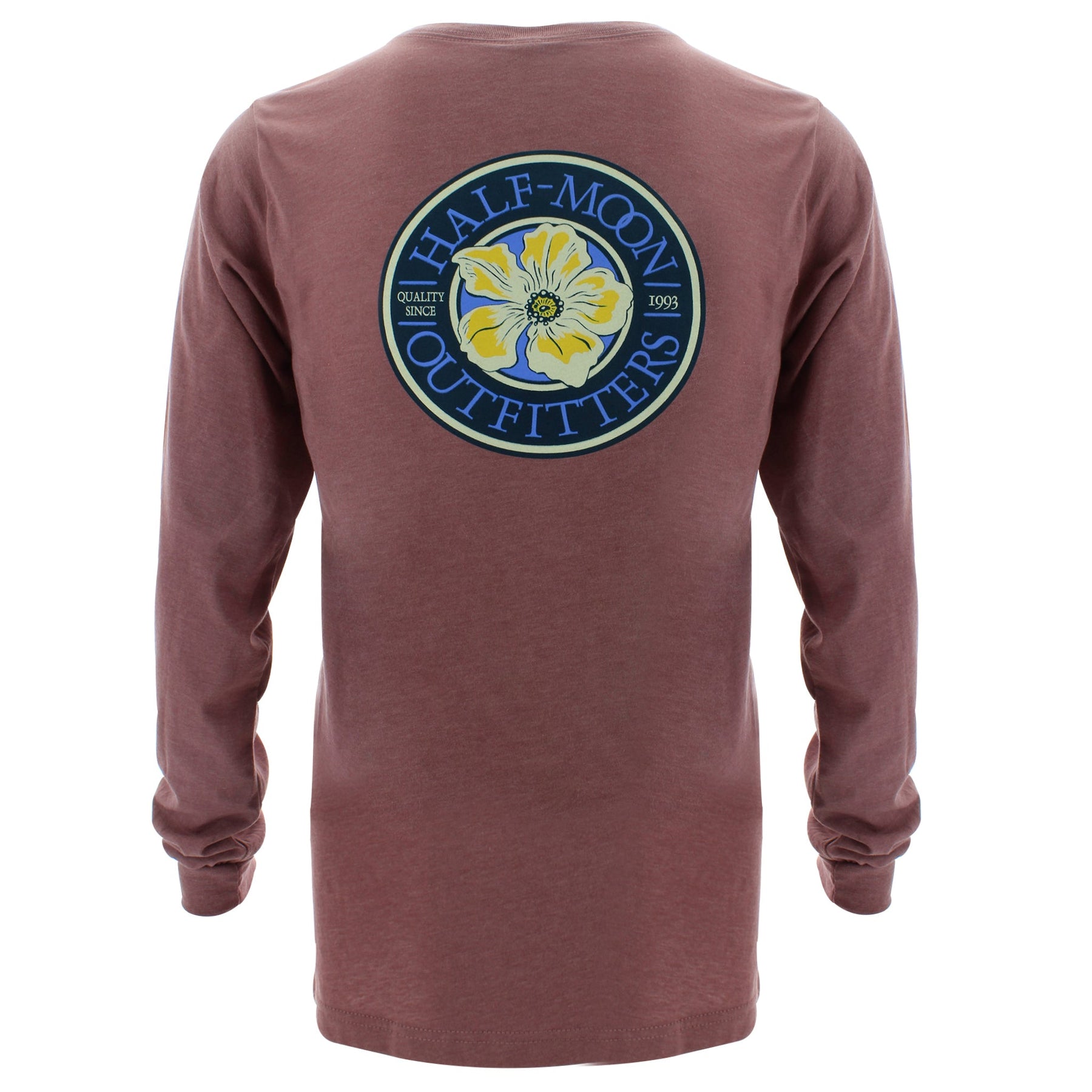 The Half-Moon Outfitters Long Sleeve Flower Logo T-Shirt is going to be your new favorite tee. These shirts are soft, have a classic fit and are the best looking t-shirts avaliable anywhere.