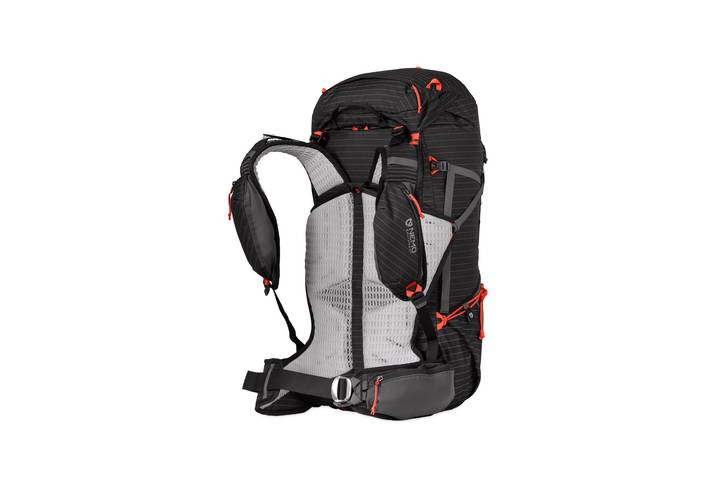 Designed for multi-day challenges, the 45L capacity features a top-loading main compartment with zippered lid, a side zipper opening to easily access gear, and a robust lashing system for peak modularity and versatility. Equally notable are the pack's easily accessible storage options built into the shoulder straps and hip belt, including a tuck-away water bottle pocket that always keeps hydration within reach.