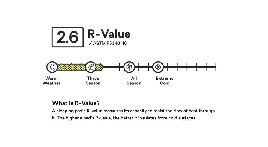 • An R-value of 1.5 on the regular bag makes Astro a perfect warm-weather pad.