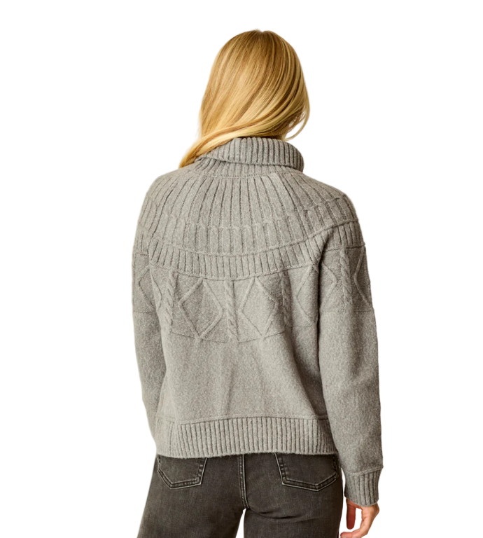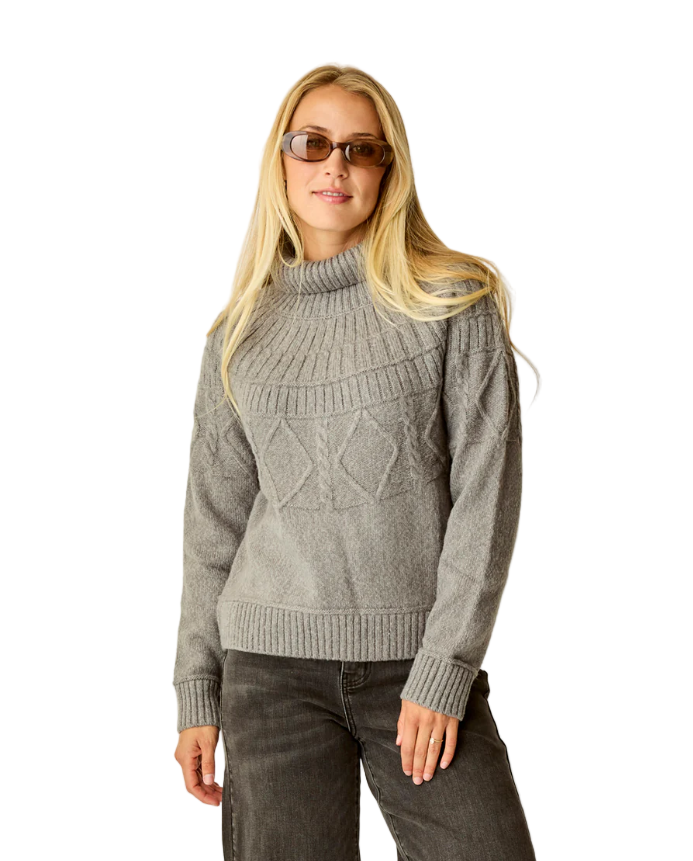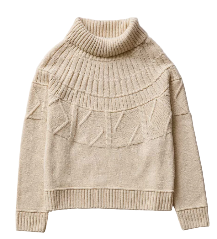 Regular price $118.00As temperatures take a tumble, might as well fight back in style. Command compliments with the Neve's overt cable pattern and loose tall turtleneck. Her classic fit and raglan sleeves offer a timeless look that's as comfortable as it is sophisticated, all wrapped up in our deliciously soft Recycled Tarmu yarn.