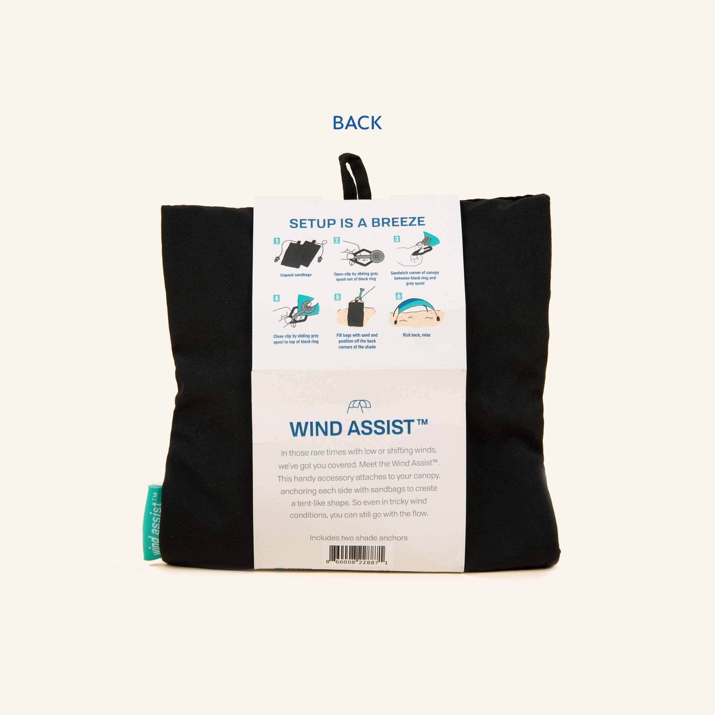This handy accessory attaches to the corners of your Shibumi Shade® canopy, anchoring each side with sandbags to create a tent-like shape. Best for those times on the beach when there's barely a breeze, the Wind Assist™ helps provide shade even in tricky wind conditions. Compatible with all Shibumi Shades