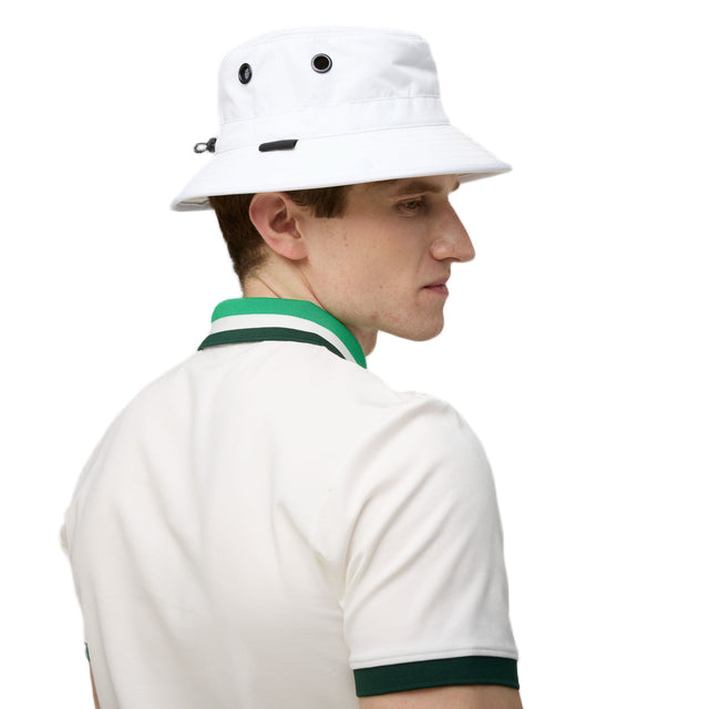Regular price $99.00Keep your head cool and covered while you're out on the course. Our modern take on a bucket hat was designed with golfers in mind. It's made from a light, rain-resistant, and breathable material that maintains a comfortable climate. Even looking for a tee is a breeze, thanks to the holder built into the brim. A stroke of genius.