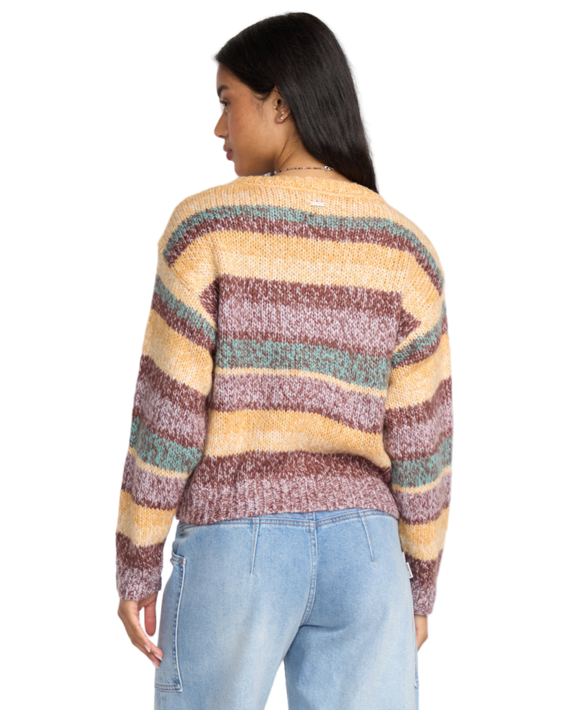 Our relaxed-fit sweater rocks a space dye stripe pattern that catches every eye in the room. The wide neckline and acrylic knit keep you cozy while a metal plate detail adds the perfect finishing touch. Featured here in the Multi colorway.