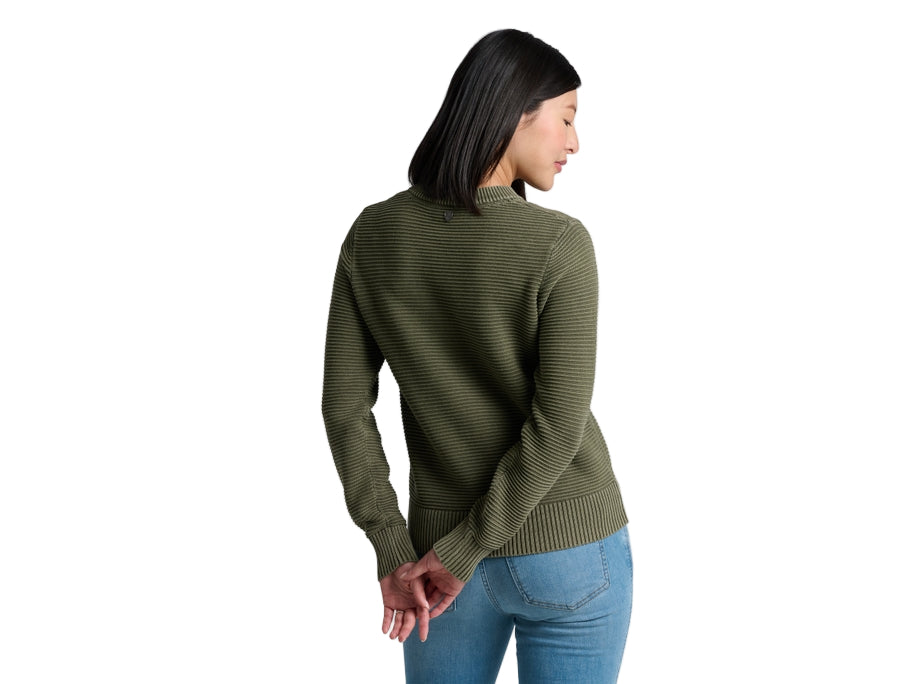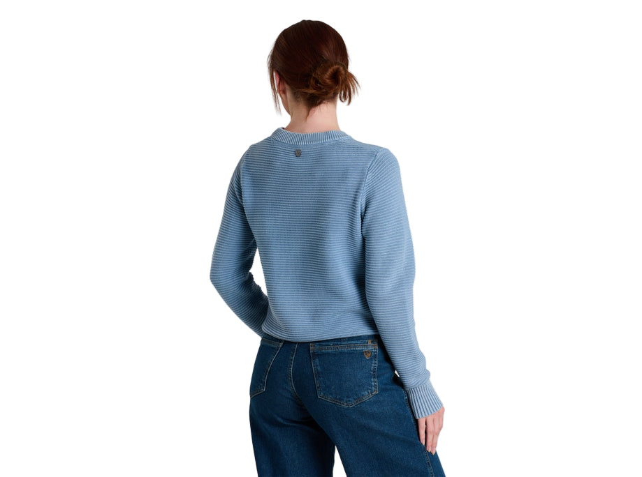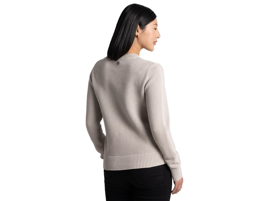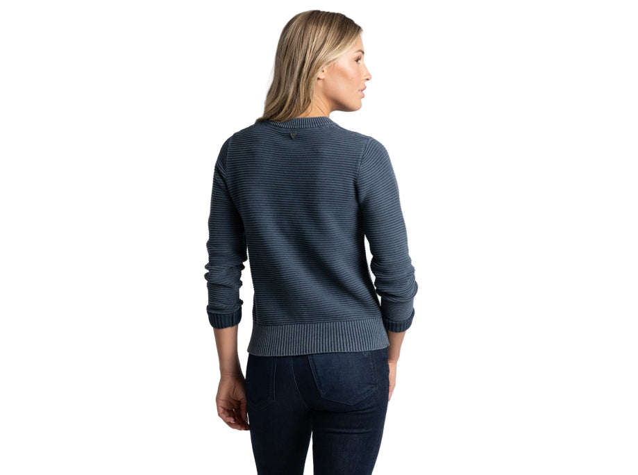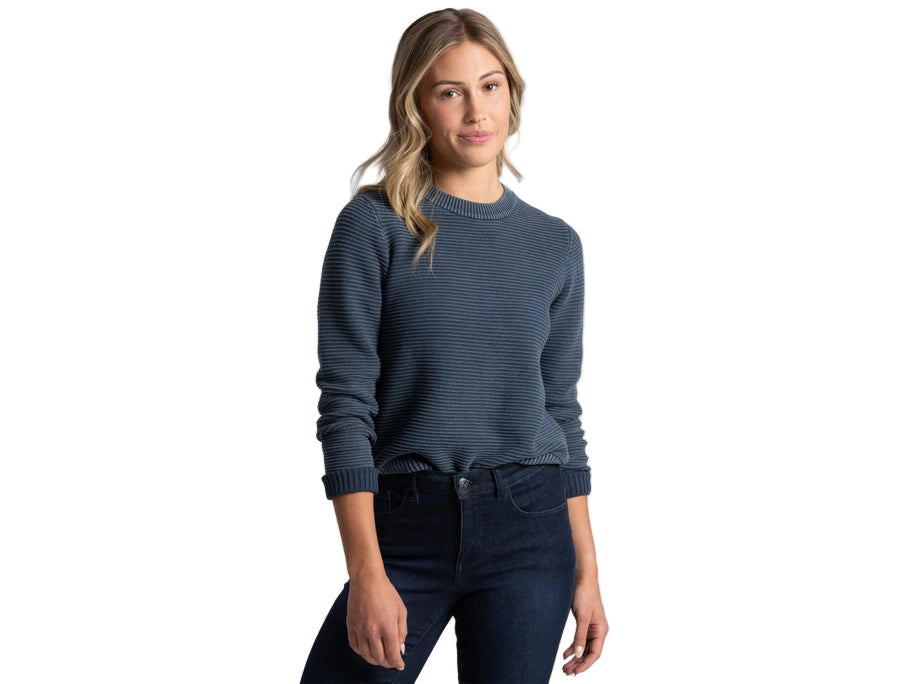 The soft, sustainable comfort of 100% organic cotton pairs with a stylish Ottoman knit for cozy, layering warmth and versatile everyday wear. Featuring a classic crew neckline and a relaxed fit, the garment dyed SOFIE™ delivers a unique look that easily transforms from casual to classy.
