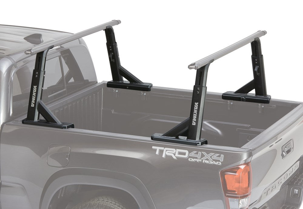 For weekend adventures and hardworking weekdays, the Overhaul HD adjustable truck rack offers best-in-class payload and unmatched versatility. Leveraging our new HD Bars for a 500-lb. on-road carrying capacity, and paired with Yakima's 300-lb. Off-Road Rating, the OverHaul HD truck rack is the ideal foundation for heavy loads. The crossbar height can be adjusted to suit your needs: way up, for long loads to go over the cabor down low, to get the rack out of the wind. The uprights are easy to take on and off in minutes, so the truck's only racked-up when needed. The OverHaul HD truck rack uses any of our HD Crossbar sizes (HD Crossbars sold separately), and accepts our SideBars for attaching off-road and utility accessories. Multiple tie-down points and the ability to fit most truck bedsincluding select tonneau coversmake this an ultra-functional rack that works and plays as hard as you do.