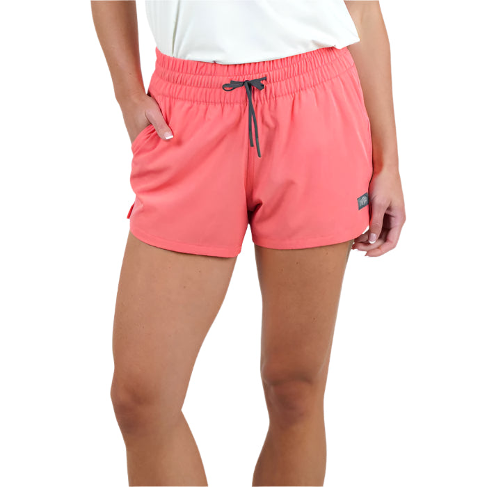Regular price $45.00You won't strike out with the Strike short. It's made with a stretch woven fabric and DWR stain resistance to withstand ocean spray or whatever comes your way. This women's swim short has a 3.5" inseam and an active fit to keep you comfortable. It also features hand pockets and a back zipper pocket, making it a go-to women's short for any outdoor activity.