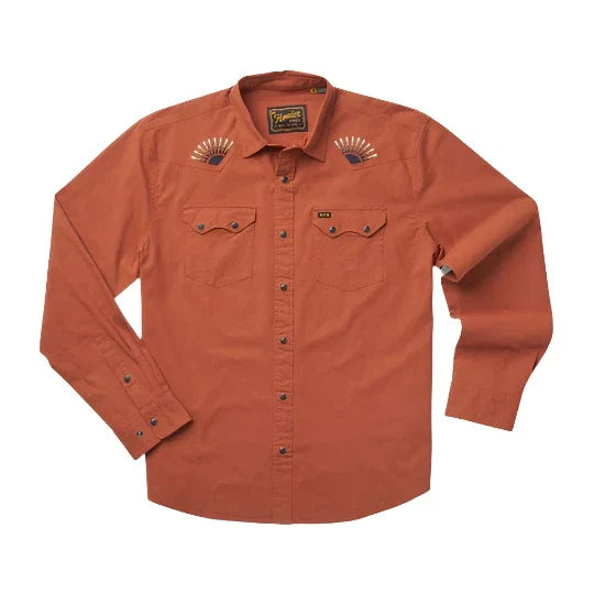 The Crosscut Deluxe is the most sought after item in our fall line year in and year out. Yes, the vintage inspired motif embroidery makes a big statement but so too do the bountiful pearl snaps, western yokes and robust stretch chambray. Collect these right along with your Gauchos for year-round Howler coverage.