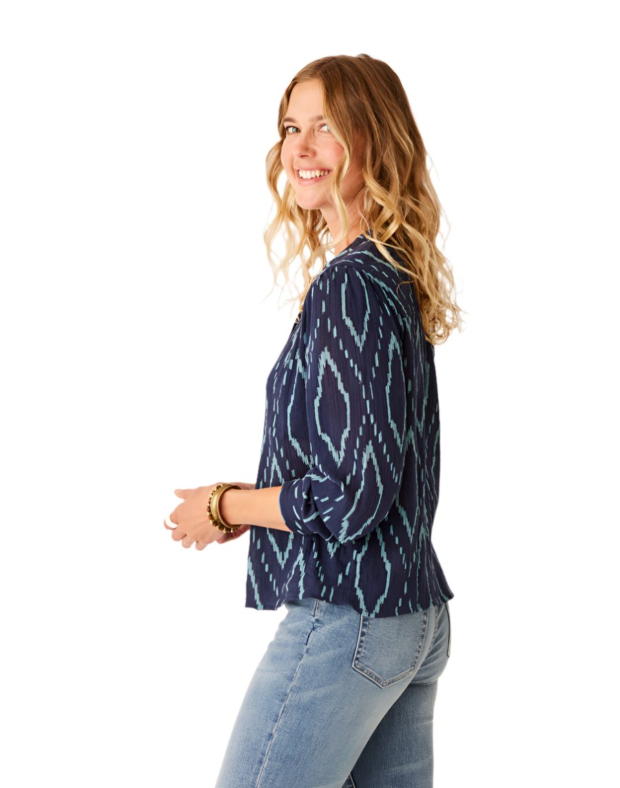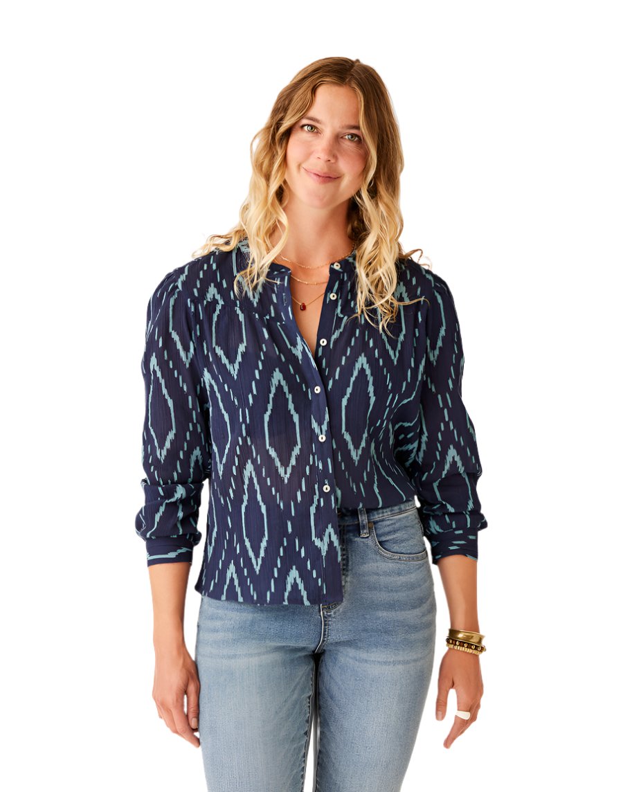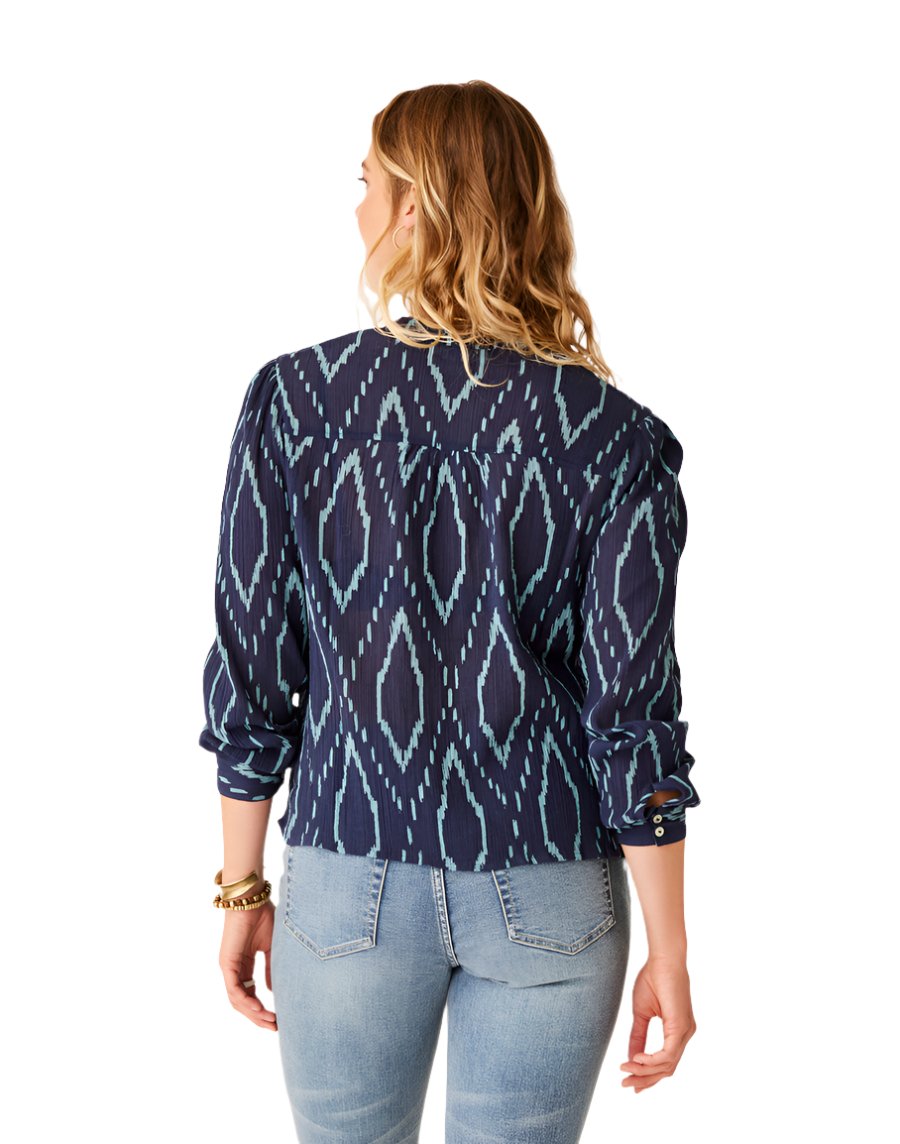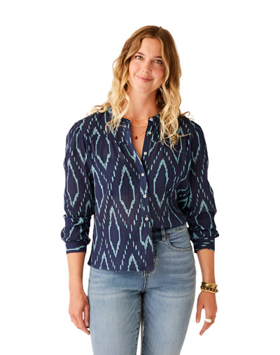 Regular price $72.00Our Dylan Gauze fabric sets the tone for warm weather victory, while gathered front yoke, volume sleeves and sleeve keyholes seal the deal.