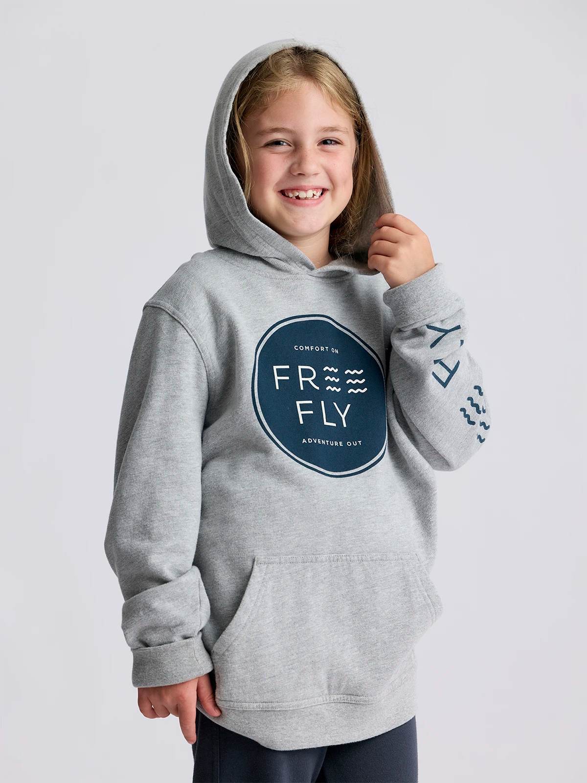 Regular price $58.00We took the same fit and feel of your kid's favorite hoodie, and outfitted it with our signature Free Fly details. The left chest has our subtle wordmark and we built the whole thing out of an ultra soft fleece for maximum comfort. Nothing fancy. No fuss. Just a super comfy hoodie built to remind us to get out there. Comfort on. Adventure out.
