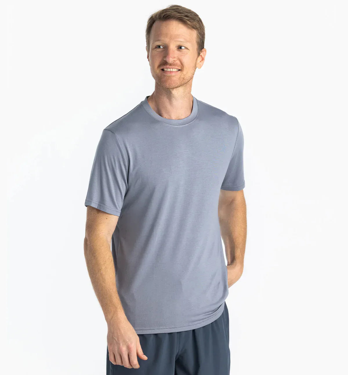 Regular price $48.00On any given day, about half the guys at Free Fly are wearing a Bamboo Motion Tee. With super clean lines and understated style, it pulls double duty as your go-to workout tee and your go-to casual tee. Fully loaded with natural performance benefits like odor-resistance and temperature-regulation, it gives you everything you want from an active t-shirt, minus the overly technical vibes. The buttery soft fabric feels great against your skin and blends in seamlessly with your everyday wardrobe. Swing by your favorite beer garden or sign up for that HIIT workout classthis tee does both.