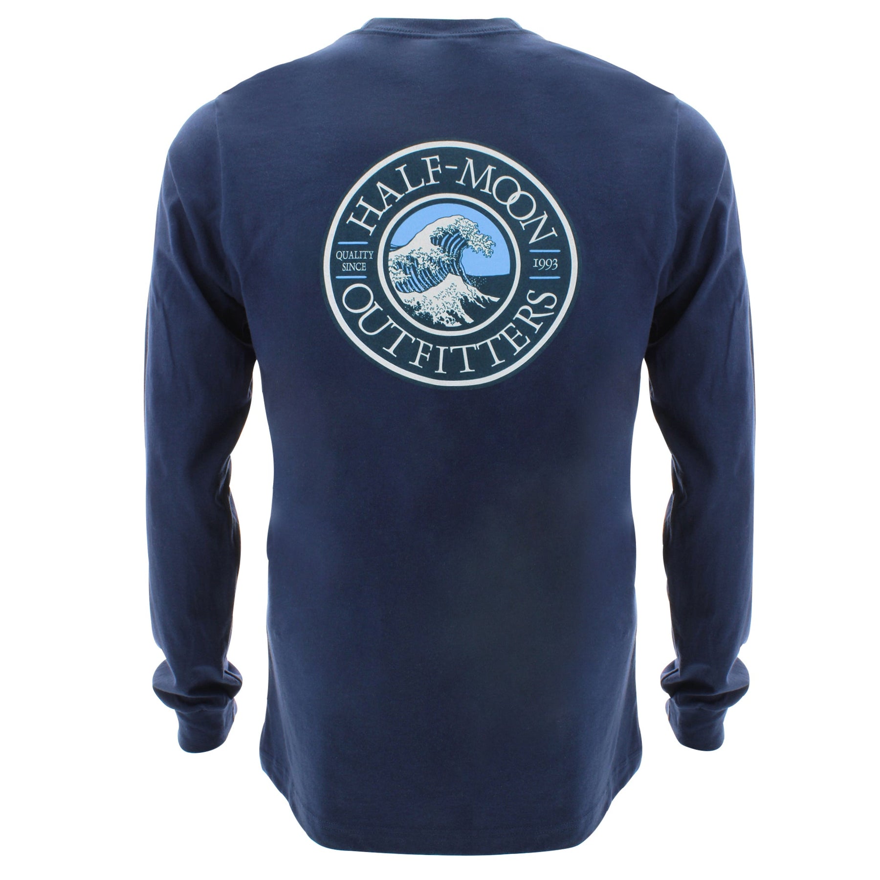 The Half-Moon Outfitters Long Sleeve Wave Logo T-Shirt is going to be your new favorite tee. These shirts are soft, have a classic fit and are the best looking t-shirts avaliable anywhere.