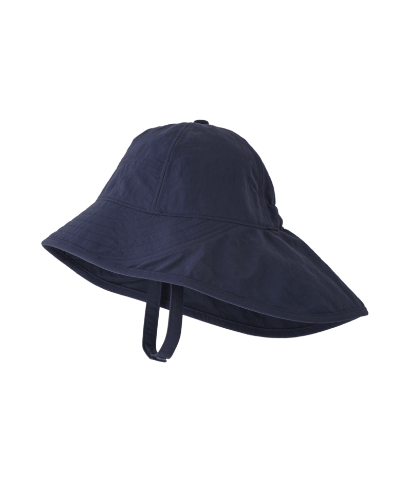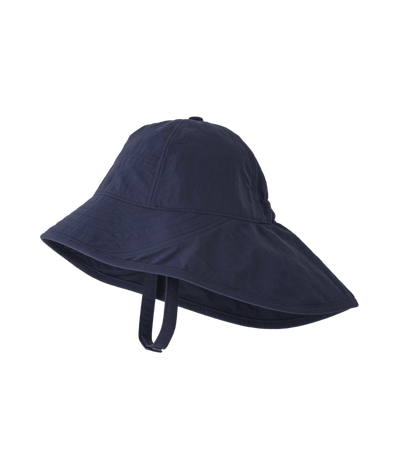 A full-brimmed safari-style hat with a drape in back for neck coverage. When the wind starts whipping, the nonchafing, adjustable chin strap keeps the hat secure. Made of NetPlus 100% postconsumer recycled nylon faille made from recycled fishing nets to help reduce ocean plastic pollution; with a PFC-free DWR finish (durable water repellent coating that does not contain per-fluorinated chemicals) and 50+ UPF sun protection.