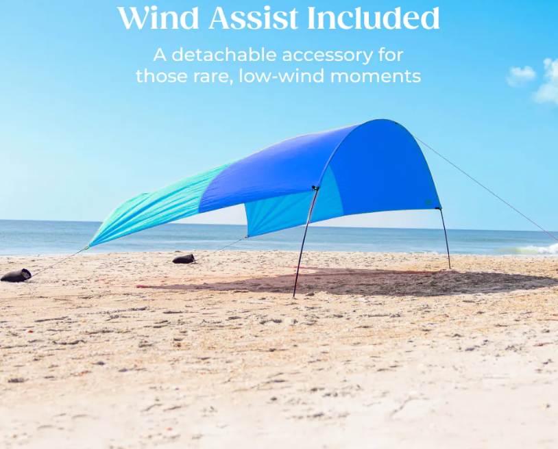 This handy accessory attaches to the corners of your Shibumi Shade® canopy, anchoring each side with sandbags to create a tent-like shape. Best for those times on the beach when there's barely a breeze, the Wind Assist™ helps provide shade even in tricky wind conditions. Compatible with all Shibumi Shades