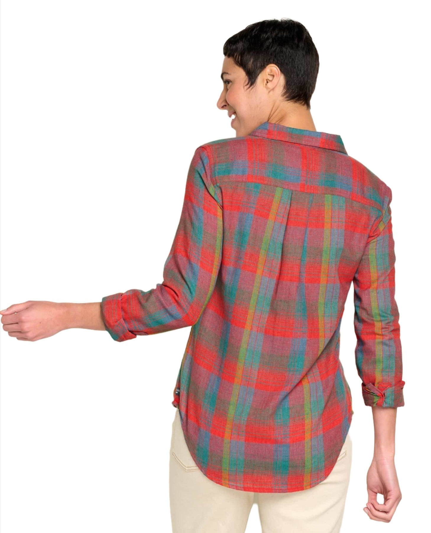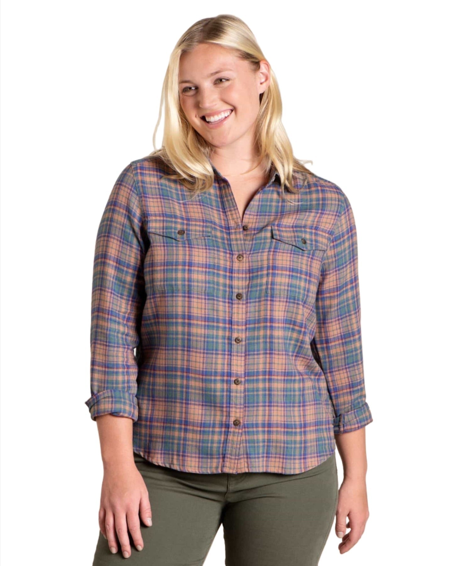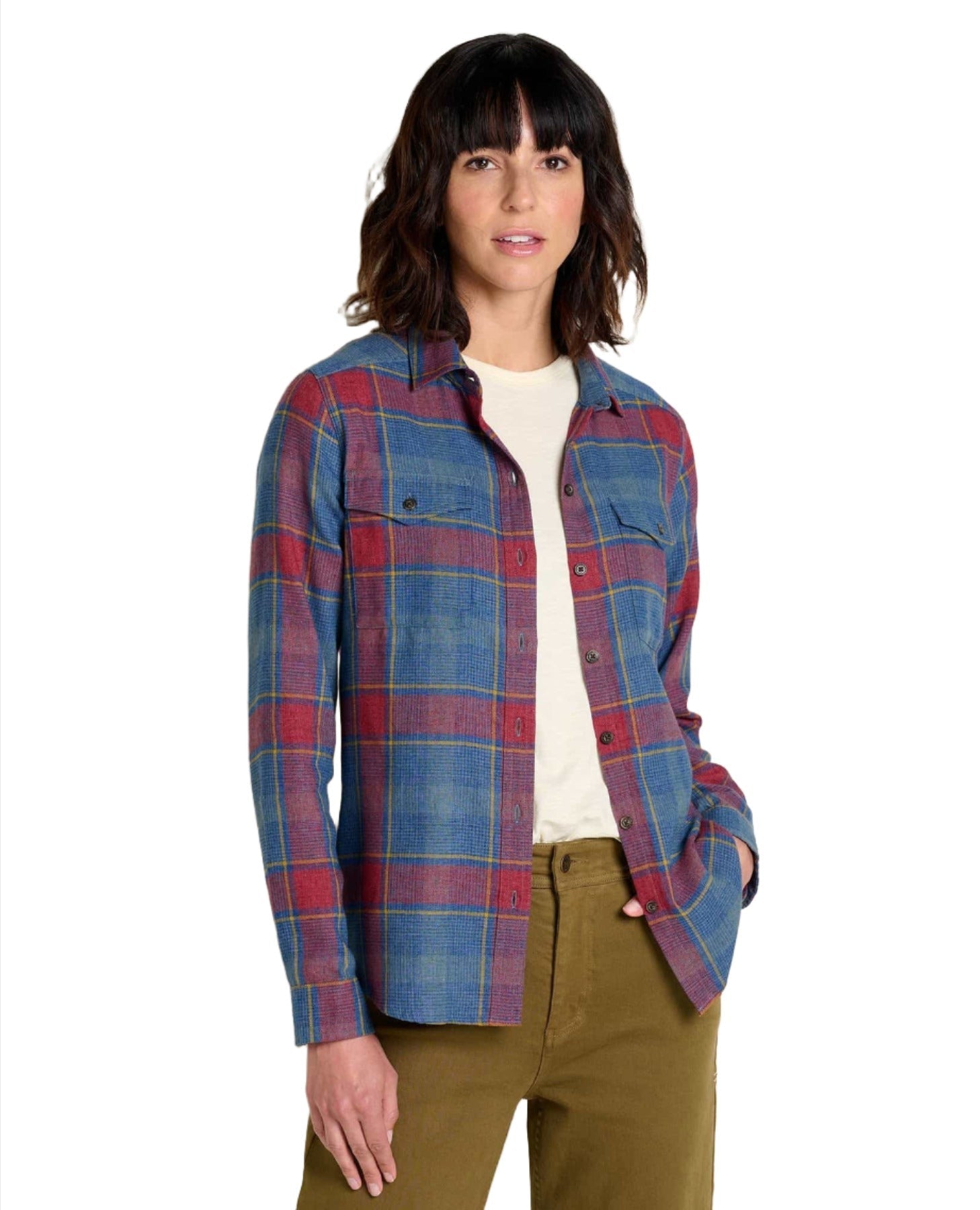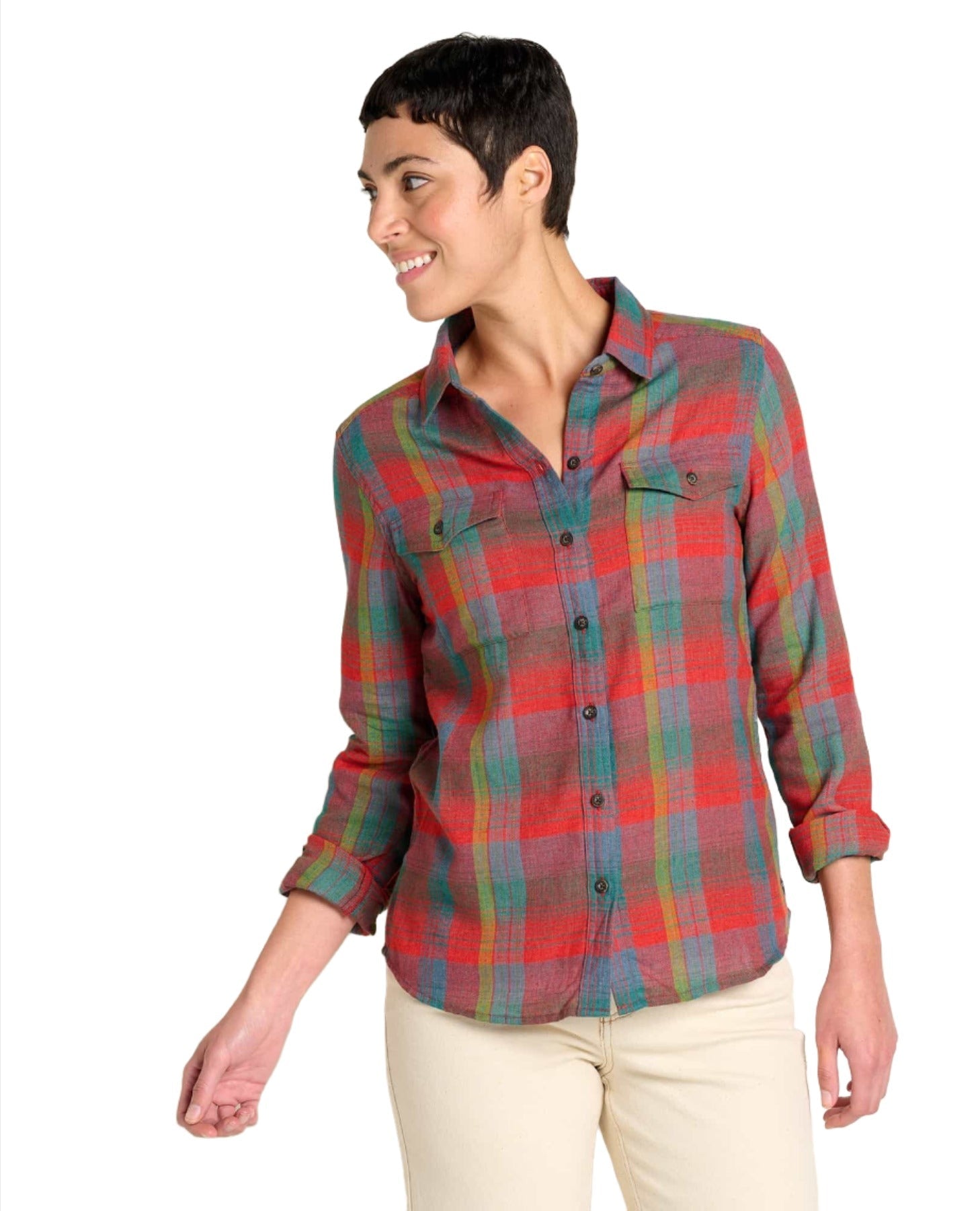 A flannel shirt fit for an outdoor queen. Ours is a lightweight herringbone weave available in epic color combos made better by recycled polyester.